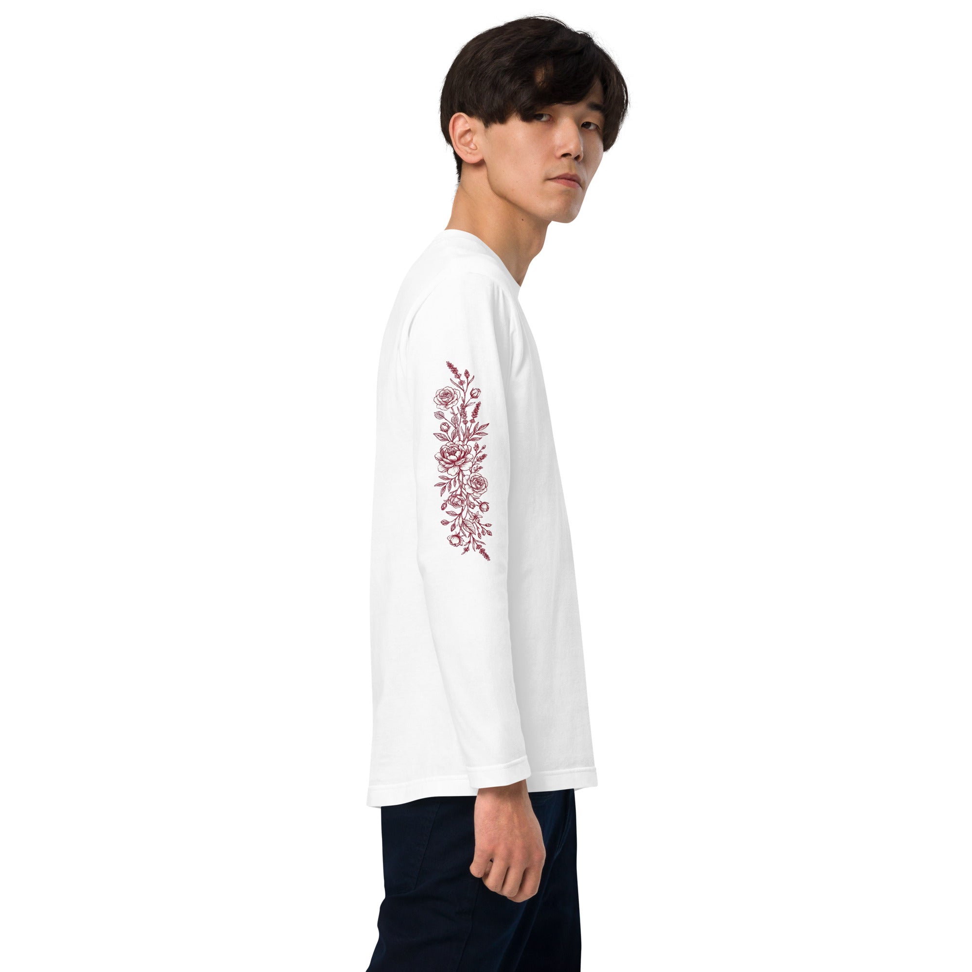 ■Material & Silhouette 生地には8オンス(190g/m²)という、しっかりと肉厚なヘビーウェイトコットン100%を使用(※ヘザーグレーを除く)。ドライな質感で耐久性が高く、繰り返しの洗濯や着用にも強いタフな一枚です。 シルエットはスタンダードなレギュラーフィットですが、着丈をやや長めに設定した「エロンゲイト・ヘム」仕様を採用。一枚で着た時のバランスが良いのはもちろん、ジャケットや半袖Tシャツの裾からレイヤードで見せるスタイリングにも最適です。